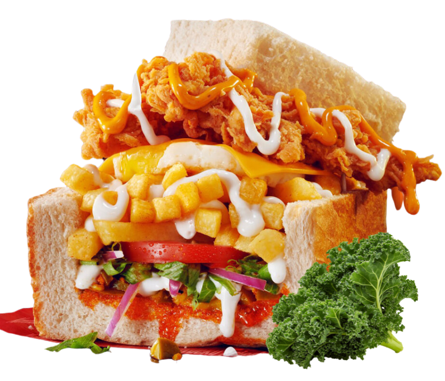 Loaded with Archaar or Chakalaka, Crispy Chips, Polony, Melted Cheese, Vienna, Russian Sausage, Egg & Our Special Secret Sauce – the perfect Kota packed with flavour!